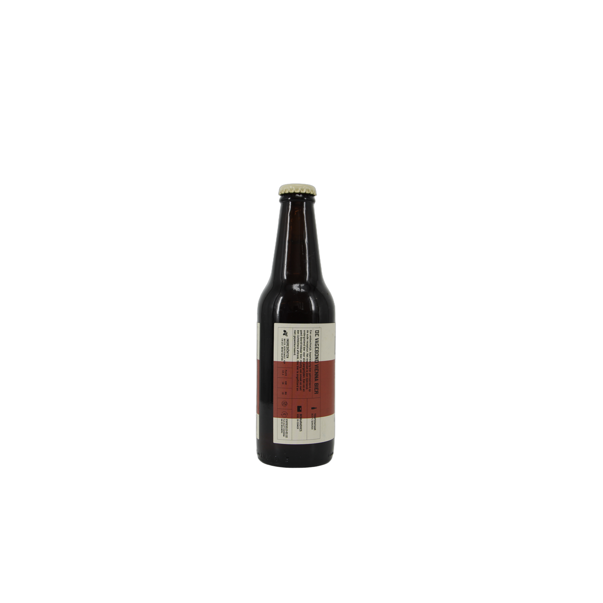 De Vagebond is een ambachtelijk Viennabier, ooit de verfijnde tegenhanger van pils. Hij schittert warm en amberkleurig in het glas en verrast met een volle, moutige smaak en een zachte, lichtbittere afdronk. Ondergistend, bekroond en doordrinkbaar in elk seizoen.